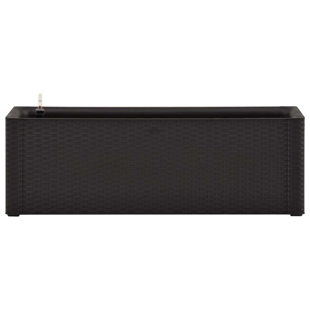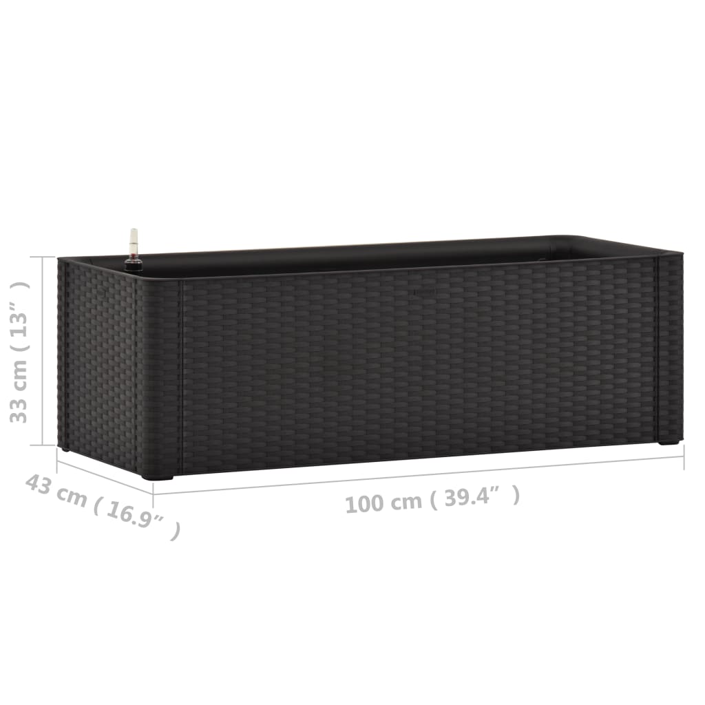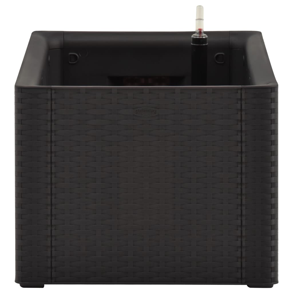 This garden planter, crafted of robust UV, weather and frost resistant PP (polypropylene), is suitable for indoor and outdoor use. The design resembles a real rattan structure. This flower box can accommodate a large number of green plants and flowers. Additionally, the planting bed features a self-watering system and level indicator to prevent overwatering.